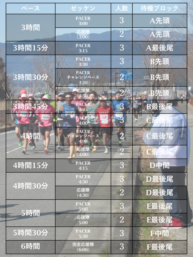 ●ペーサー:目標タイム達成に向けて一定のペースで走ります。