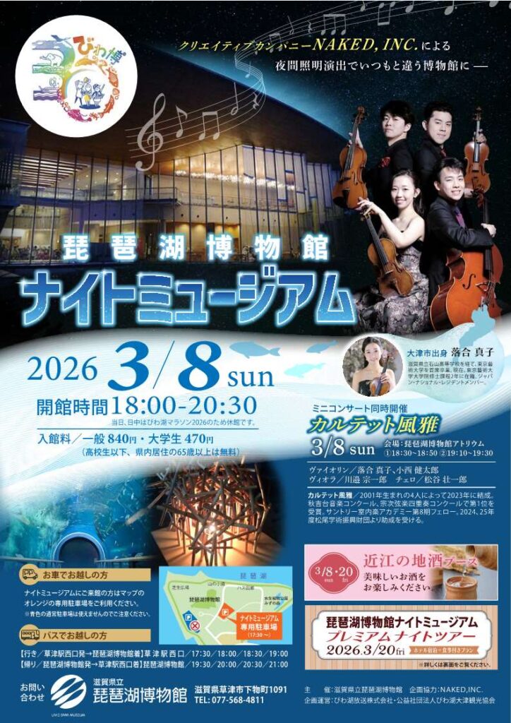 ・開館時間:2026年3月8日(日)18:00~20:30 ※当日、日中はびわ湖マラソン2026のため休館です。