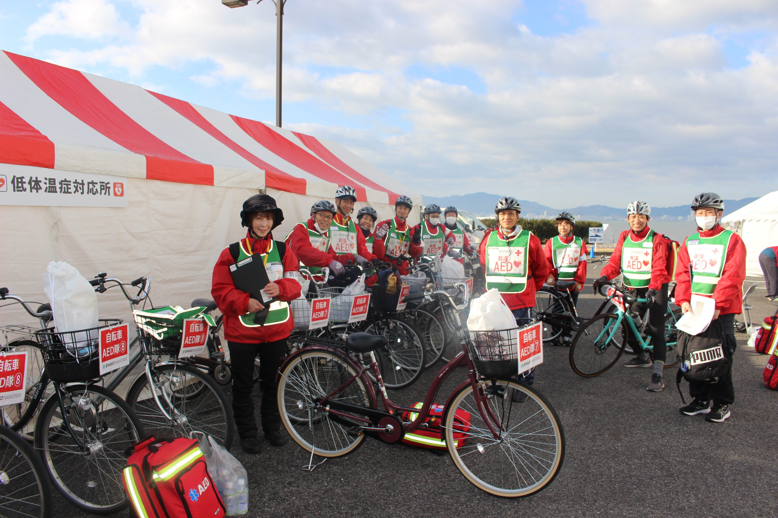 ※自転車やAEDなどの備品や救急セットは事務局で準備しますが、自転車については個人所有のもので活動していただいても構いません。なお、個人所有の自転車で活動する場合は、必ず自転車損害賠償責任保険等に加入してください。